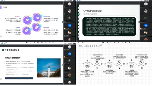 7月30日上午9:40开展了第二期培训,本次培训由辅导员程成主持,参加会议的有城建学院2022级各专业辅导员及学生班主任。由2022级新生学生班主任根据制定的班级学年工作计划进行汇报交流。给水专业学生班主任徐锦辉和苏潇赞表示要在工作的实施过程中及时调整,建设出一个优秀班集体,希望让新生感受到“此生无悔入给水,来生还做常大人”。给水专业辅导员张争对两位的工作计划给予了建议,并希望两位能将计划落实到具体工作中。工程专业学生班主任刘璐和刘硕表示希望以自身之力起到表率作用,带领学生不断进步,以身作则带动专业发展。工程专业辅导员邵丹迪对两位工作计划表示认可,希望两位站在不同的角度思考解决问题,并表示“道阻且长,未来可期”。土木专业学生班主任赵梓汝和孙萌萌介绍了学生班主任的各种身份,为新生能更好、更快地融入大学生活做了充足的准备,使学生对班级有归属感,责任感,荣辱感。土木专业辅导员程成希望各位学生班主任,细致规划工作,做到“顶天立地”,构建更完美的班级。建环专业学生班主任杨如梦和苏泳文从开学前的准备,到对自身和新生的要求,详实细致,考虑全面,切实为新生提供有效的帮助。并表明计划赶不上变化,要依据实际,不断完善。建环专业辅导员李欣一对两位学生班主任的规划进行了点评,希望二位能够制定一定的量化标准,为班级建设添砖加瓦。