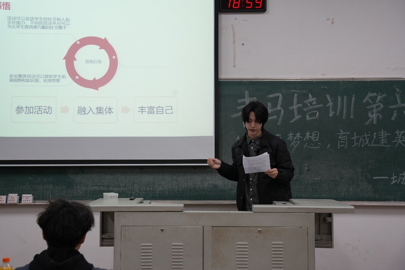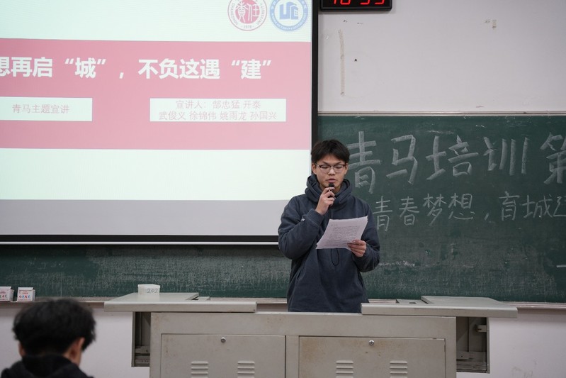 挺膺担当敢作为,青年奋进当自强。为深入学习习近平新时代中国特色社会主义思想,12月28日晚,tyc7111cc太阳成集团在W1202开展青马培训第六课“筑青春梦想,育城建英才”互动式宣讲,全体青马班成员到场参加。