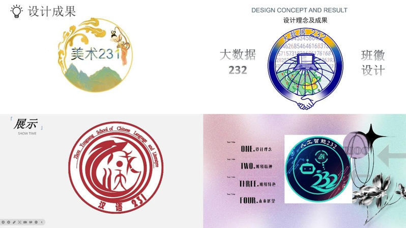 此次比赛前期充分动员与宣传,共吸引70余个新生班级报名参赛。通过初赛、线上投票等环节,来自两校区的39班级进入决赛环节。决赛评比中,各班级通过PPT对自己班级的班徽的设计理念、所蕴含的元素、传递精神进行了深度解读,充分体现出了班徽中蕴含的奇思妙想、专业特色与精神内核。评委们重点从设计理念、色彩搭配、图案设计、班级文化展示等方面进行打分。经过精彩激烈的比拼,共评选出一等奖班级8个、二等奖班级9个、三等奖班级10个、优秀奖班级12个。此外,秦晔等9位老师获得优秀指导老师奖。