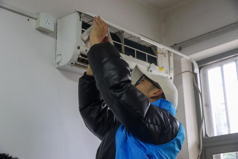 志愿团成员们分成2队,进入楼栋进行清理活动。成员们分工合作,首先对空调外侧进行彻底擦洗,随后取下满是污垢的空调滤网,多次用清洁剂清洗干净,确认无误后装回,确保空调可以安全运行。团队成员们相互支持,创造了一个清洁舒适的住宿楼,让暖意通过空调传递给每一个人。
