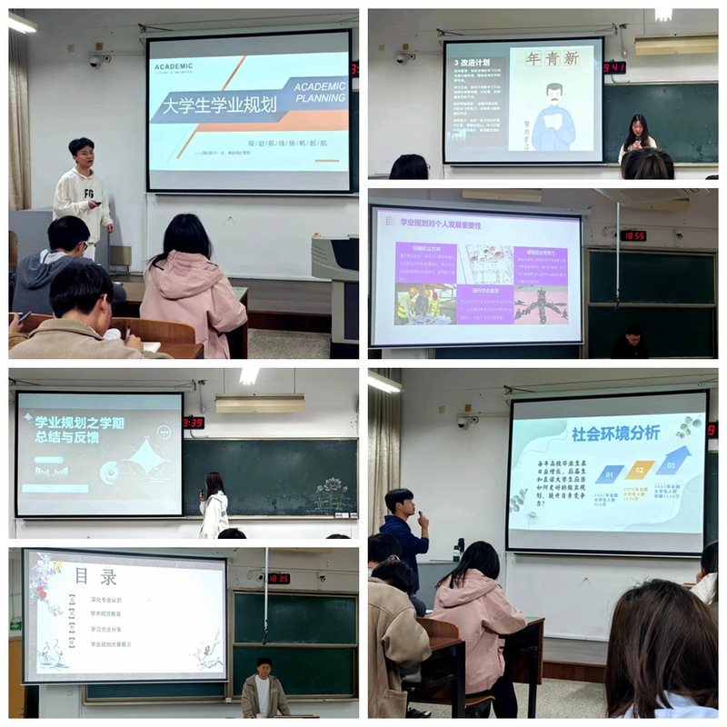 大一大二各班级通过自由组队,精心准备团队学业规划书及PPT展示,每个团队围绕自身专业特点,分析学业重点难点,树立学业目标,规划学业路径,每班经辅导员和班主任现场聆听推选2组进入院赛。此次月度主题班会帮助学生认识自己、清晰学习方向,激发学习积极性,增强学习动力,引导学生共同探讨学业问题,培育团队互助精神。