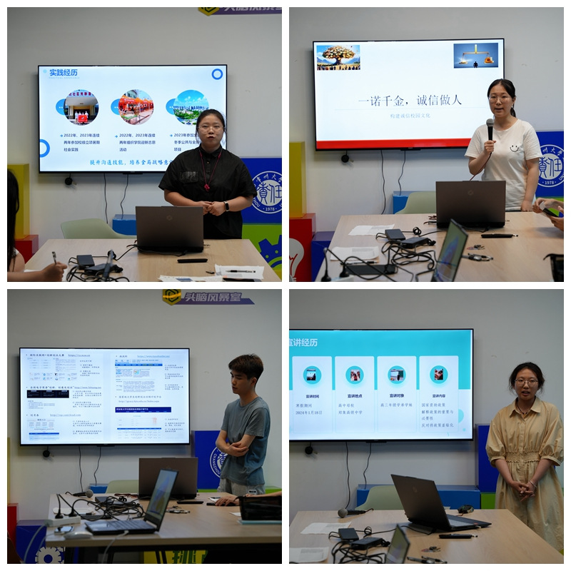 第四项活动是诚信励志主题宣讲。活动邀请了来自不同学院的优秀学生代表,他们结合自己的成长经历,分享了如何在大学期间坚守诚信底线、积极参与学科竞赛和志愿服务等方面的故事。城建学院工程212的唐才知、环境学院资环202的李鹏、安全学院消防211的杨银蓉等同学,用自己的实际行动诠释了诚信的内涵和价值。海外教育学院中爱233(电子)的钱俪文作为资助宣传大使,还进行了资助政策的宣讲,帮助同学们更好地了解资助政策,增强感恩意识。