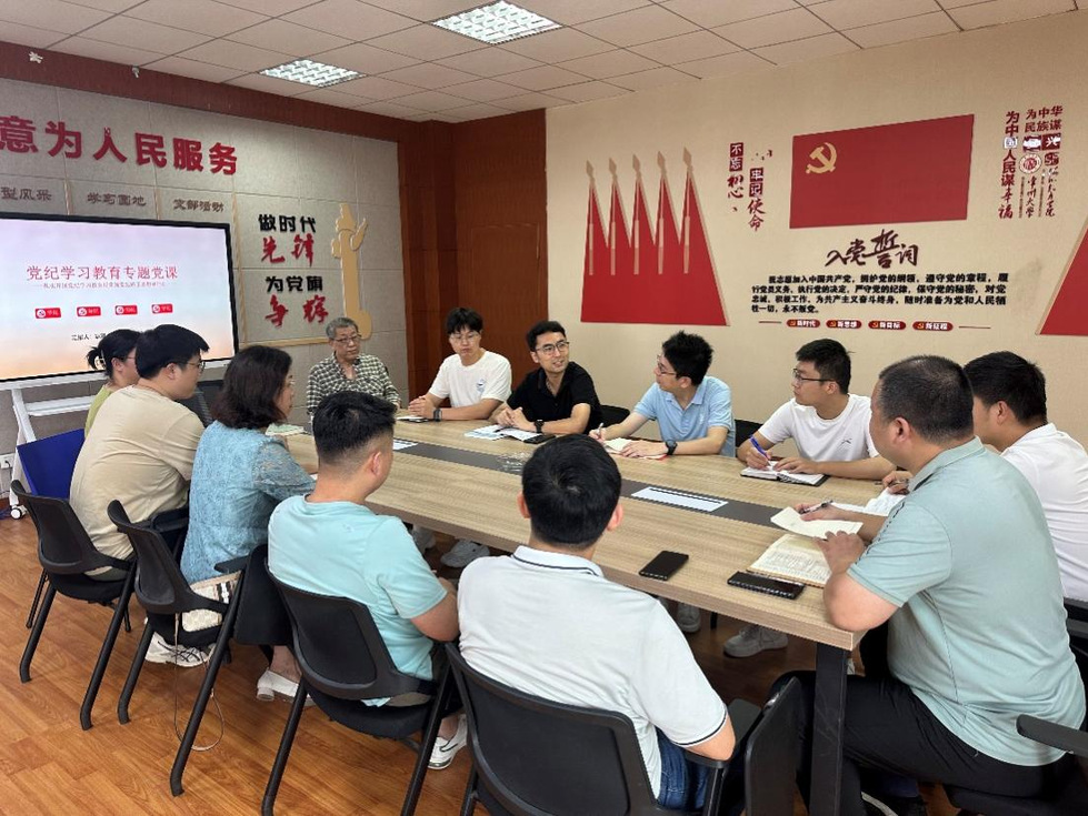 2024年7月3日下午,工程管理专业在明行楼518会议室召党纪学习教育专题学习会。会议由专业副主任刘少峰主持,工程管理系全体教师参加会议。