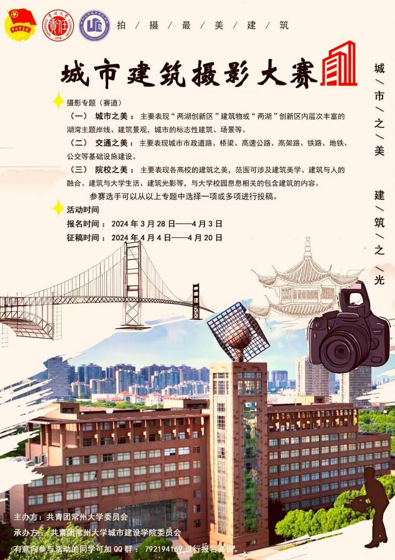 为充分展现我国城市建设的新成就、新变化、新形象,由校团委主办、tyc7111cc太阳成集团团委新媒体中心承办的“城市之美、建筑之光”专题摄影比赛于2024年4月至6月举行。本次比赛面向太阳成tyc7111cc全体学生,tyc7111cc太阳成集团老师、学生会代表担任评委。