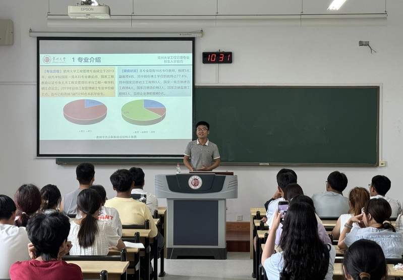 为帮助学生更快适应大学生活,深入了解专业内容和发展前景,9月11日上午,工程管理专业在立德楼105教室召开工程管理专业新生入学教育讲座。活动由工程专业教师代表傅宏伟、刘威老师共同主持,并邀请江苏成章建设集团有限公司技术部经理殷森平作为行业专家到会宣讲,工程管理专业2024级全体新生参加。