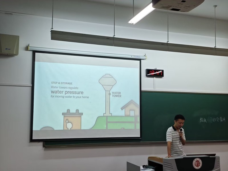 会议首先介绍了给排水专业的历史沿革及主要研究方向,着重介绍了城市水资源利用与管理、污水处理与中水回用、建筑给水排水、雨水收集与利用等应用前沿。随后,李谱用一个生动的视频介绍了城市给水的具体过程,强调该专业致力于为城市和工业提供安全、可靠的饮用水,通过建设完善的排水管网系统,降低水污染,保护生态环境;接着,李谱阐述了给排水专业与土木工程、环境工程、建筑环境与能源应用工程等相关专业的联系,突显了其多学科特性和广泛应用。最后讨论了专业未来发展方向,特别是在应对全球水资源危机中的关键角色,指出专业致力于提供可持续水资源解决方案,确保人们获得健康、清洁的水源。