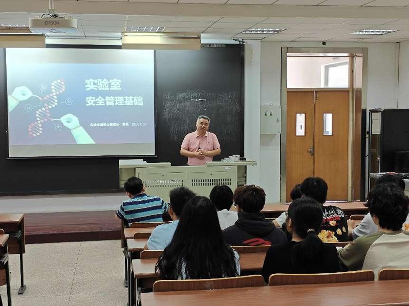 为增强新生实验室安全意识,提升实验室安全技能,学院于9月26日邀请实验室设备与管理处副处长黄勇在明行楼112教室为新生进行培训。