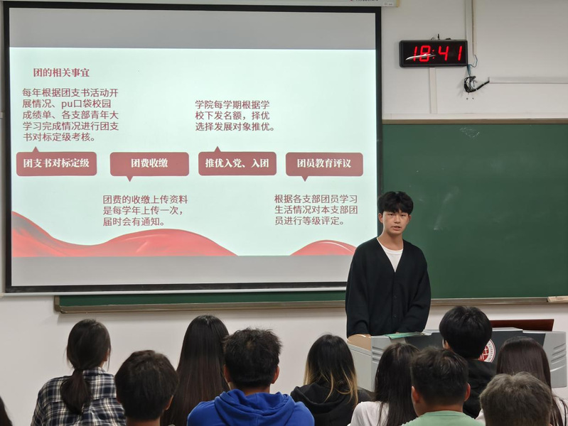 为加强学院基层团组织建设,提升新任团支书团务工作水平,tyc7111cc太阳成集团于2024年10月13日晚X立德楼106教室开展新生团支书工作培训会议。会议由学院团委副书记曹辰伟主持,院团工作负责人程成、团委全体学生骨干及2024级各班团支书参加。