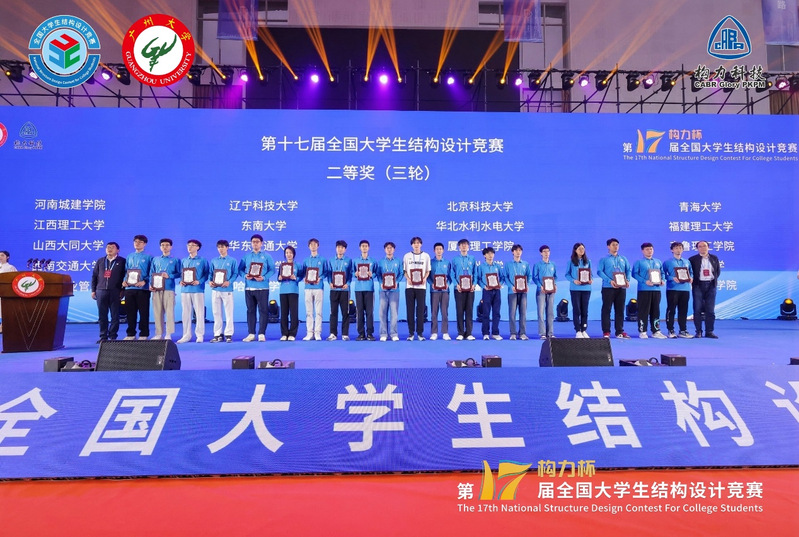 2024年11月8日至10日,由全国大学生结构设计竞赛委员会主办、广州大学承办的“构力杯”第十七届全国大学生结构设计竞赛在广州举办。经过12个小时的现场模型设计与制作,以及两天的模型加载测试,由我校城建学院土木221班申杰、土木221班刘鑫超和土木222班汪鑫组成的队伍(指导教师:王新杰、郭翔),在众多队伍中脱颖而出,荣获全国总决赛二等奖,实现了我校在此项竞赛中的历史性突破。同时,我校也荣获高校优秀组织奖。