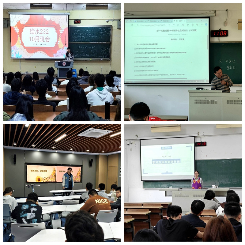 为进一步做好审核评估动员、学风建设和考研就业指导等工作,学院积极组织各年级召开十月主题班会。班会由各班班主任和辅导员共同主持。