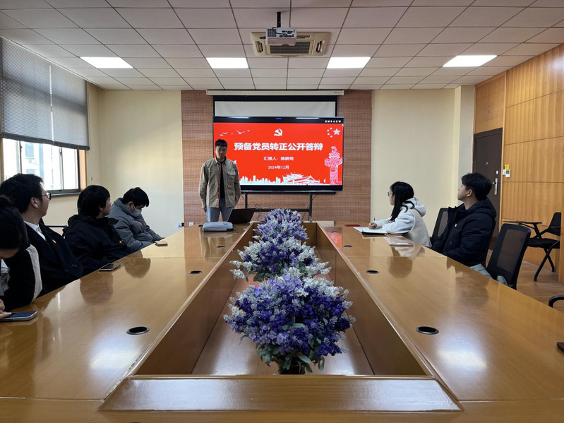 为进一步规范党员发展程序,充分发挥党员群众的监督、评议作用,保证党员发展质量,1月3日上午,学院在明行楼514会议室举行预备党员转正答辩评审会。答辩由学院党委统一组织,由党委副书记顾坚、组织员徐晓莉、支部书记封晓鸣、支部书记邵丹迪、支部书记李欣一组成评审组,部分学生代表旁听答辩。12位转正期满的预备党员参加此次公开答辩。。