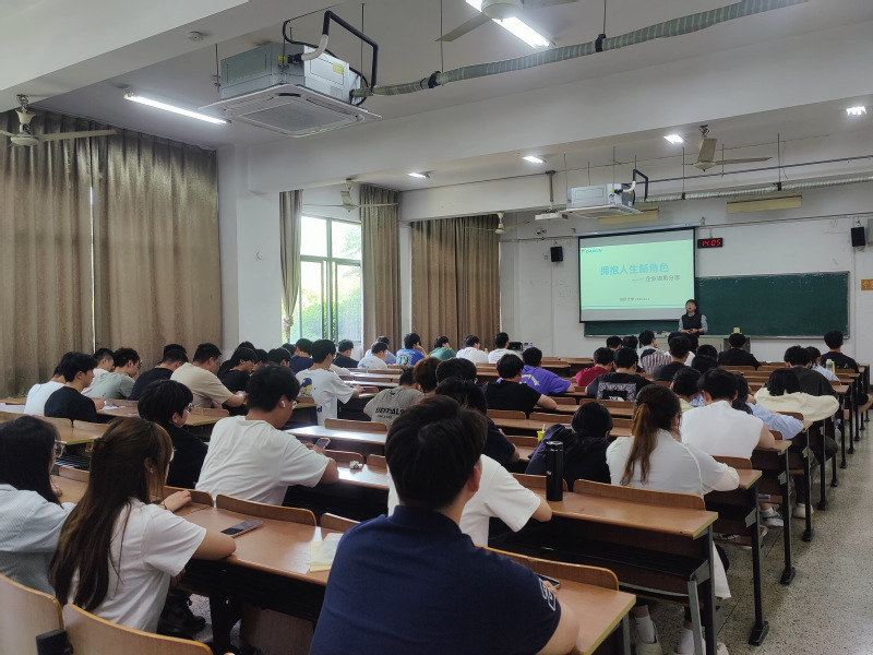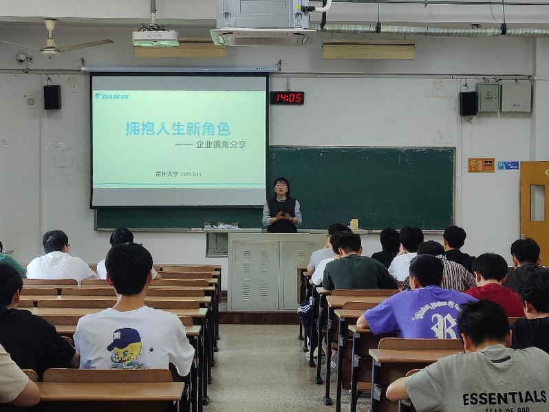 为进一步强化学生职业能力,提升就业核心竞争力,5月14日,tyc7111cc太阳成集团开展主题为“拥抱人生新角色”的校园宣讲会,本次讲座邀请大金(中国)投资有限公司南京分公司人事课课长任和清主讲,辅导员张争到场主持,建环22级全体学生到场参会。