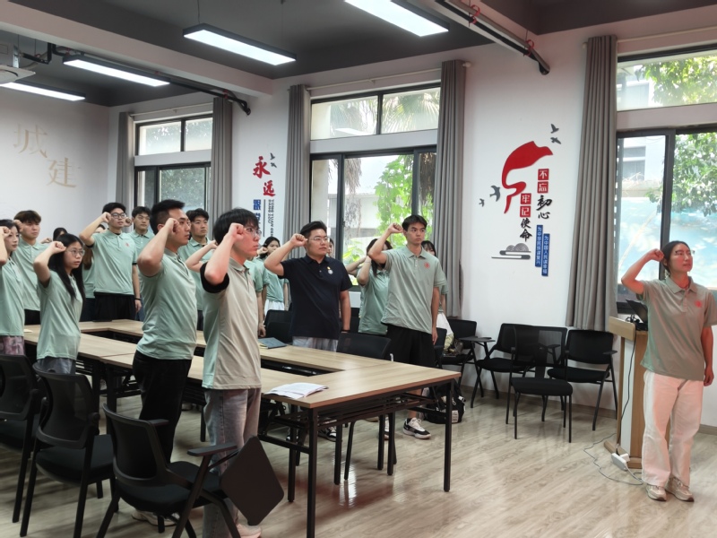 程成向六位实践小分队队长授予实践旗帜。“以青春之名,担时代之责!…让青春在中国式现代化实践中绽放绚丽之光!”在领誓人杨光艳同学的带领下,全体实践队员紧握右拳,面向队旗,发出振聋发聩的青春誓言,彰显了城建学子矢志深入基层、服务社会、挺膺担当的坚定信念与昂扬斗志。