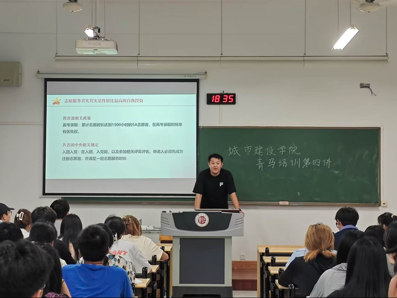 志愿服务践真知。第四讲课程主题为志愿服务,由校团委吴炳辉为学员详细讲解什么是志愿服务以及志愿服务的意义。让学员们切实认识到何为奉献精神,同时提升了学员们的社会责任感。此外,老师还向大家介绍了不同地参与志愿服务的方式与途径,增强了学员们的参与热情。
