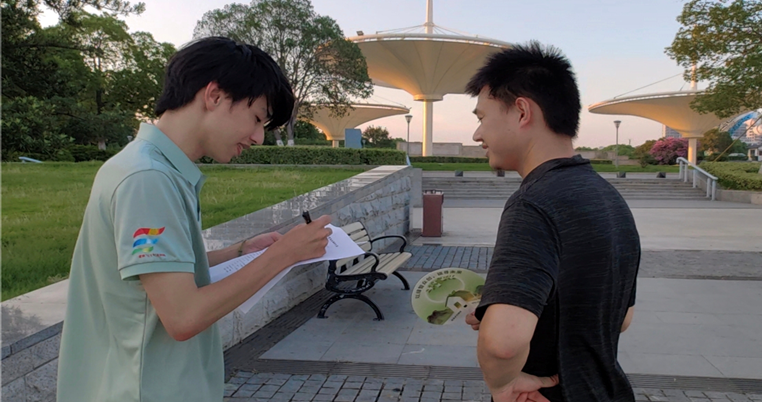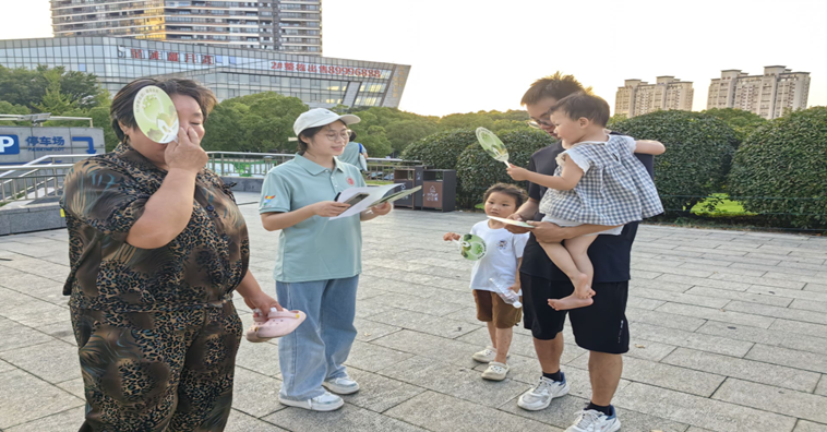 团队最后一站深入武进区西湖街道的湖滨社区与揽月湾广场展开城市问卷调查并分发宣传手扇。实践团队发现,部分城市居民表示愿意为绿色智能设备承担一定额外成本,但前提是能预见明确的经济或环境效益。这表明城市绿色转型已有群众基础,但亟需完善政策支持、技术服务及效果验证体系,以“数据实效”