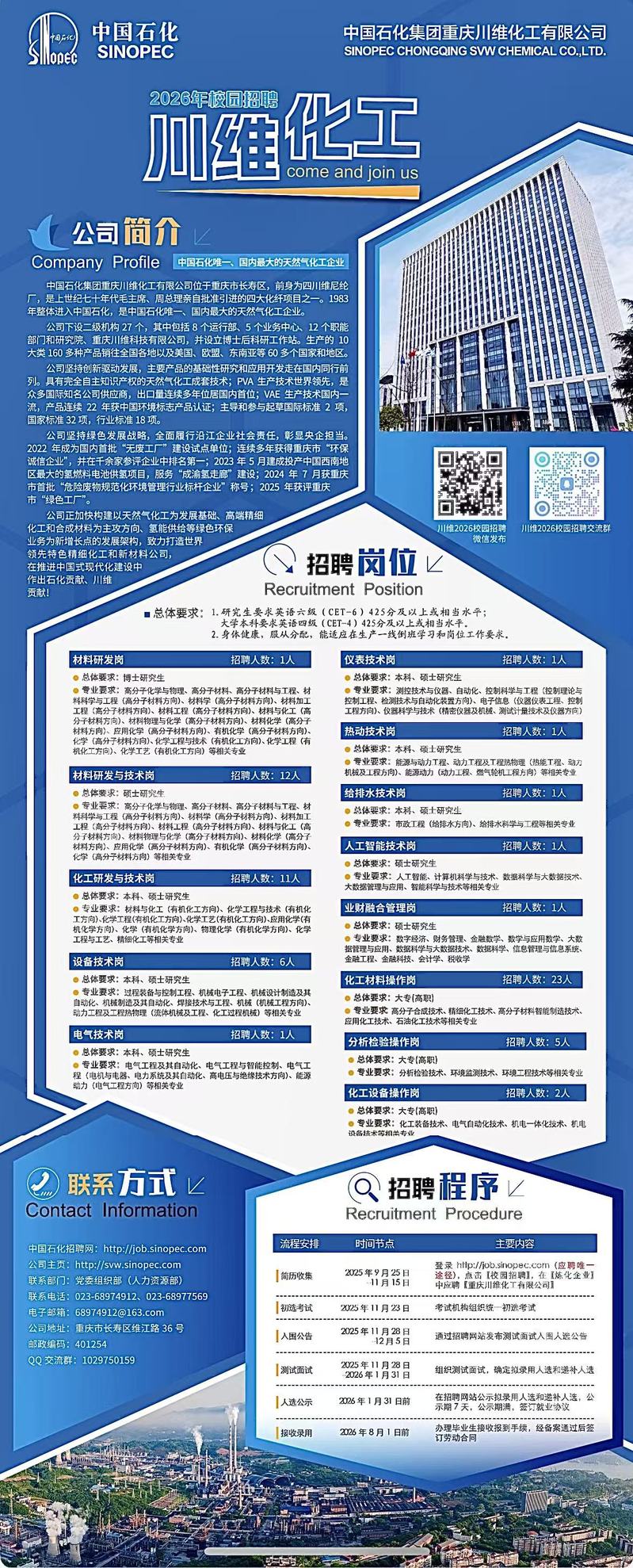 招聘速递[2025050]中国石化集团重庆川维化工有限公司校园招聘