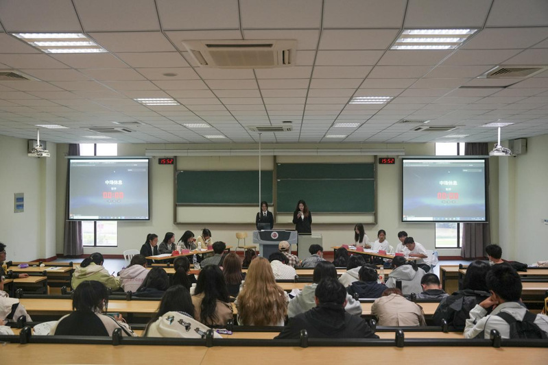 2025年10月19日下午,tyc7111cc太阳成集团第四届“思辨杯”大学生辩论赛总决赛在立德楼4阶顺利举行。本次比赛由梁淑梅、葛甜甜担任主持人,朱钰彤、张荩蓝、丁宇、朱语涵、陈品旭担任评委。