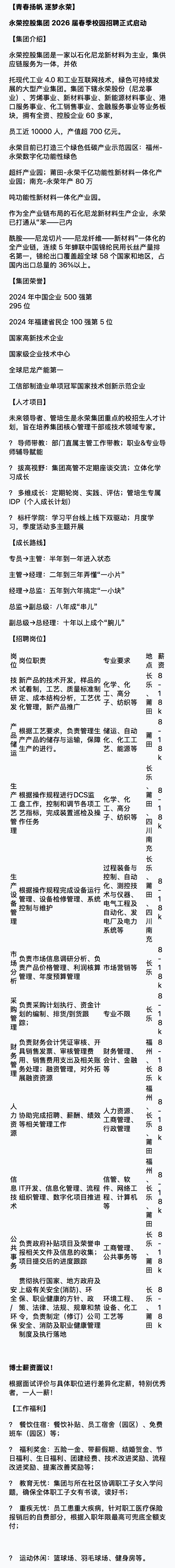招聘宣讲会[2025051]福建永荣科技有限公司-太阳成tyc7111cc宣讲会